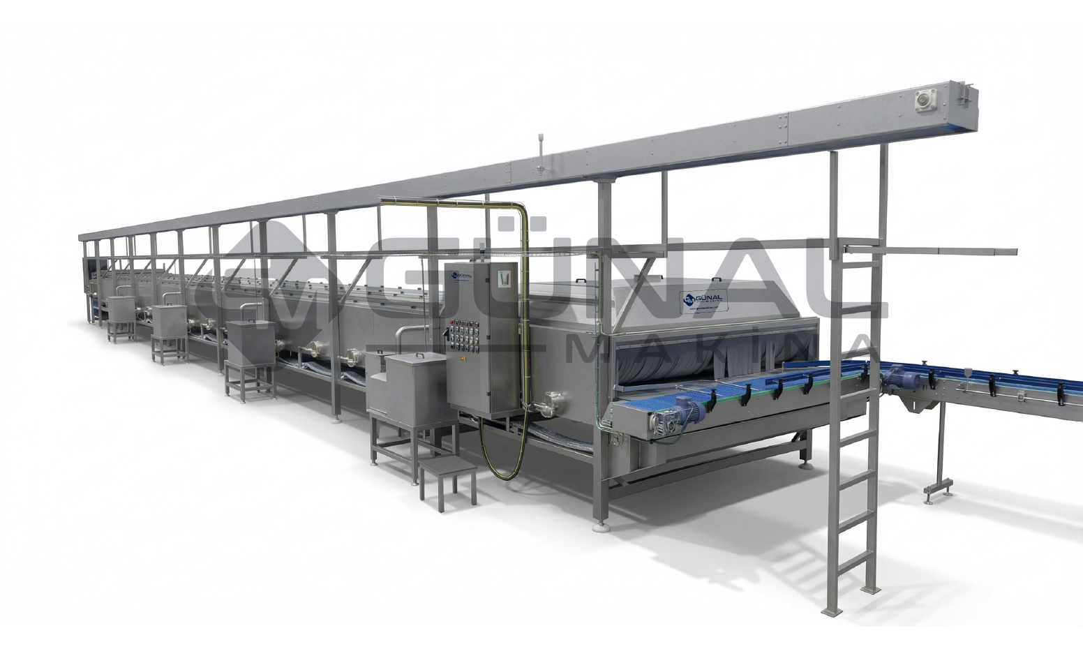 Tamamı AISI 304/316 paslanmaz çelikten üretilen hat, gıda güvenliği standartlarına uygundur. Su tasarrufu sağlayan devir daim sistemi işletme maliyetlerini düşürürken, tesis ihtiyacına göre saatte 10–100 ton arası yüksek kapasiteli çözümler sunar.
