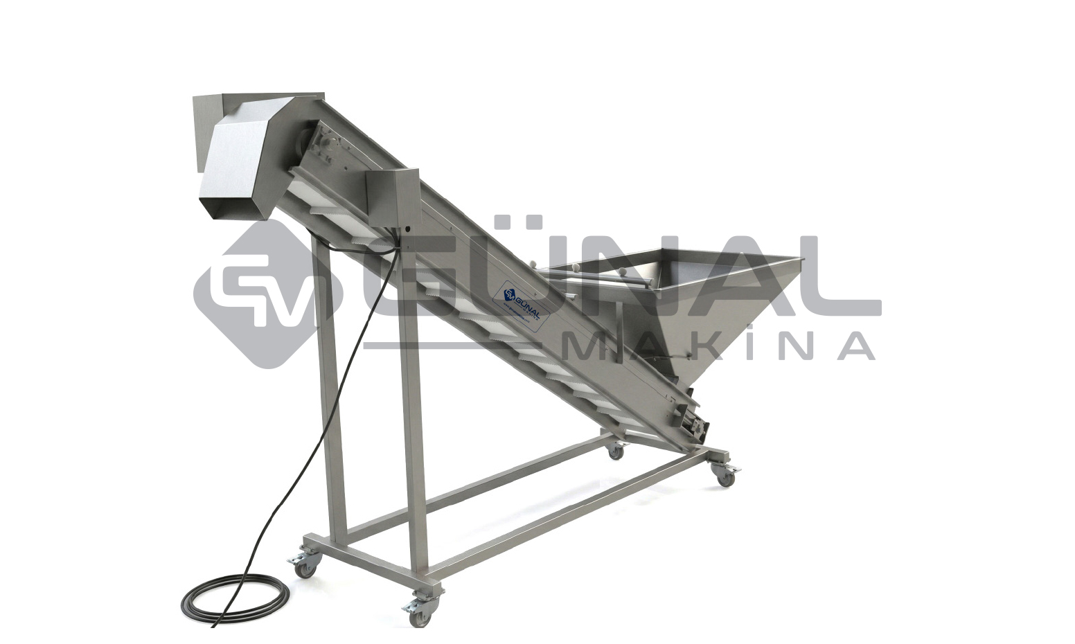 Gıda işleme tesislerinde, zeytin ve taze meyve/sebze gibi narin yapıdaki ürünleri su dolu bir hazne içinden alarak üretim hattına taşımak için tasarlanmıştır. Suyun kaldırma ve yastıklama kuvvetinden faydalanan bu sistem, ürünlerin birbirine veya makine yüzeylerine çarparak zedelenmesini (vuruk oluşumunu) engellerken, taşıma esnasında etkili bir ön yıkama işlemi de gerçekleştirir.