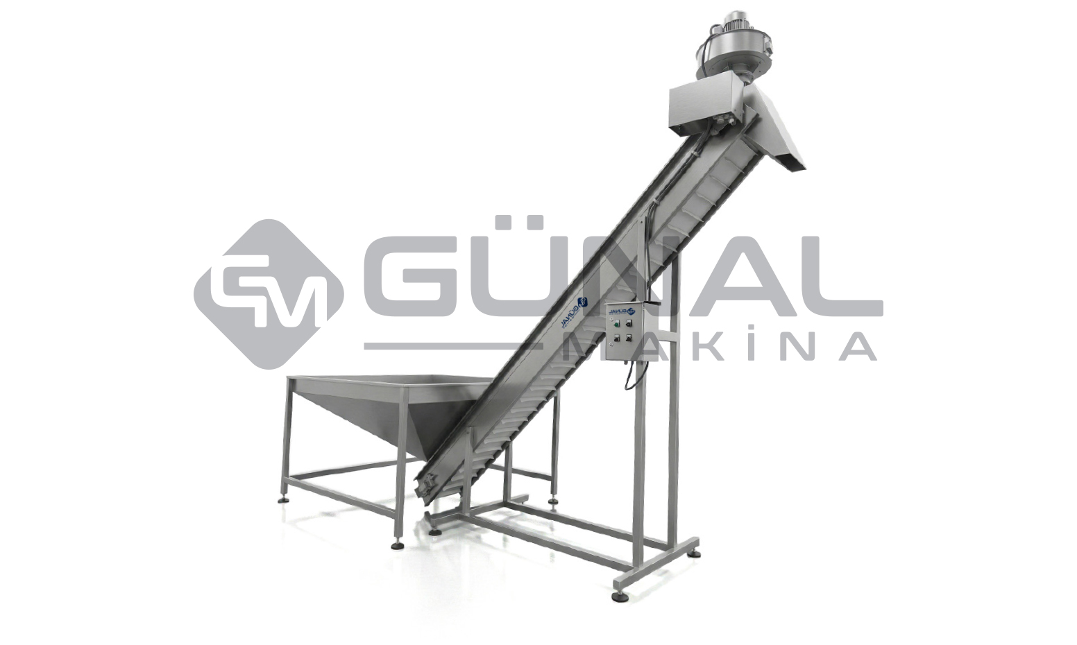 304 Kalite Paslanmaz Çelik Yapı: Gıda tüzüğüne, sürekli yıkama işlemlerine ve yoğun neme tam uyumlu olarak; elevatörün şasesi, taşıma bandı aksamları ve ana gövdesi korozyona yüksek dayanım gösteren 304 kalite paslanmaz çelikten üretilmiştir.